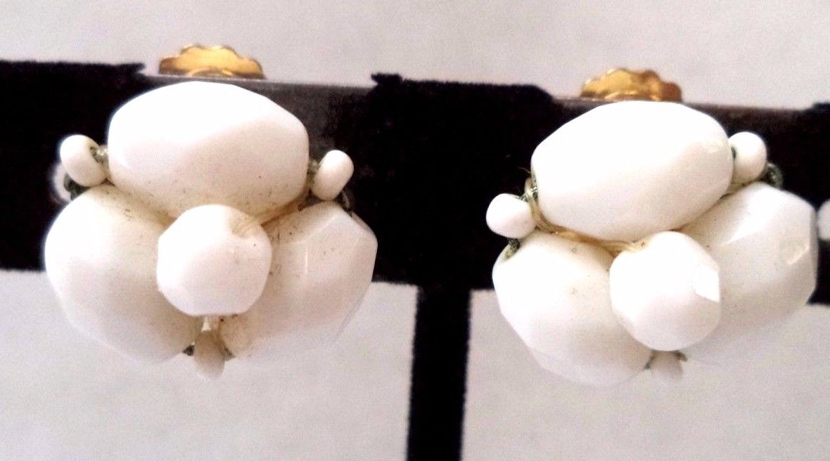 Title (ebay affiliate link): STUNNING VINTAGE ESTATE GOLD TONE WHITE MILK GLASS BEADED EARRINGS!!! 2396T