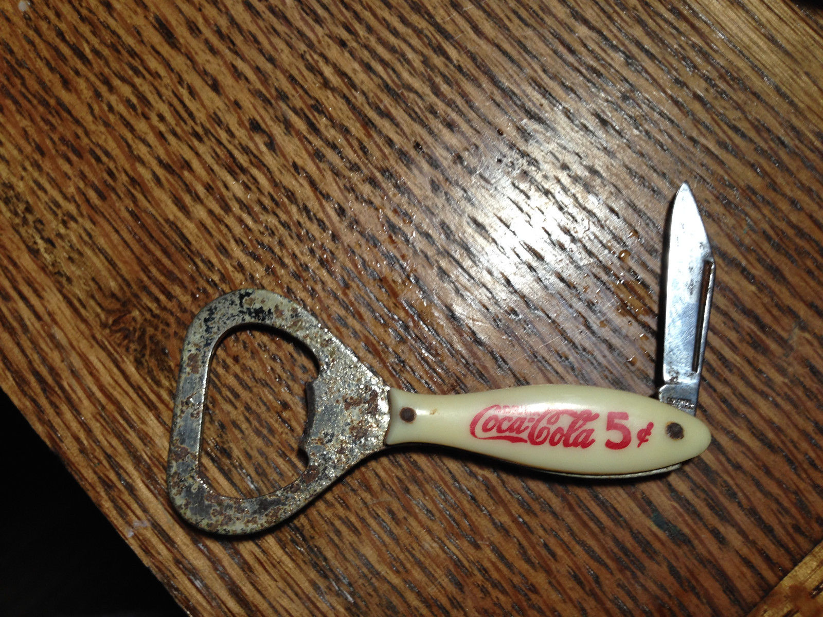 Title (ebay affiliate link): Vintage Coca-Cola 5 cents Combination Bottle Opener & Pocket Knife Colonial USA