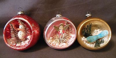 Title (ebay affiliate link): 3 Vintage Diorama Snowman Angel Bird Glass Christmas Ornaments NR