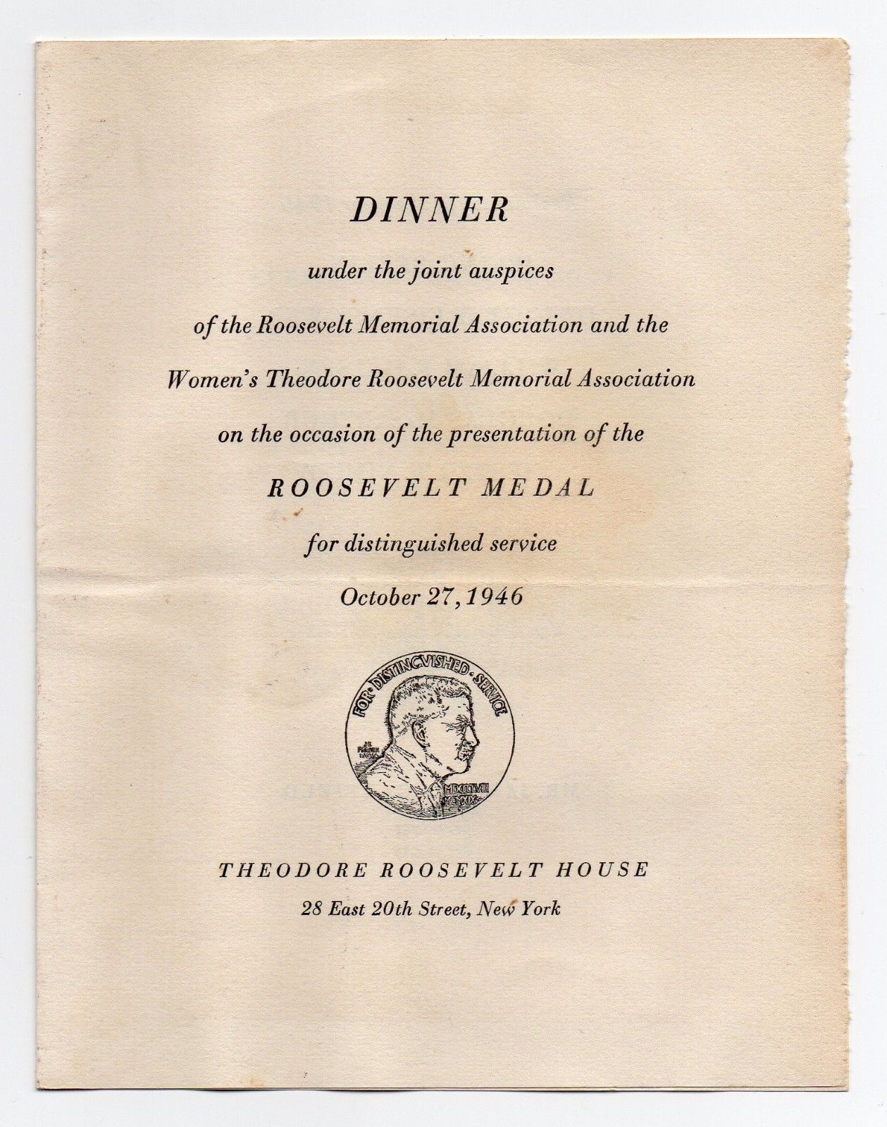 THEODORE ROOSEVELT MEDAL CEREMONY PROGM. IRVING BERLIN MACARTHUR EISENHOWER '46