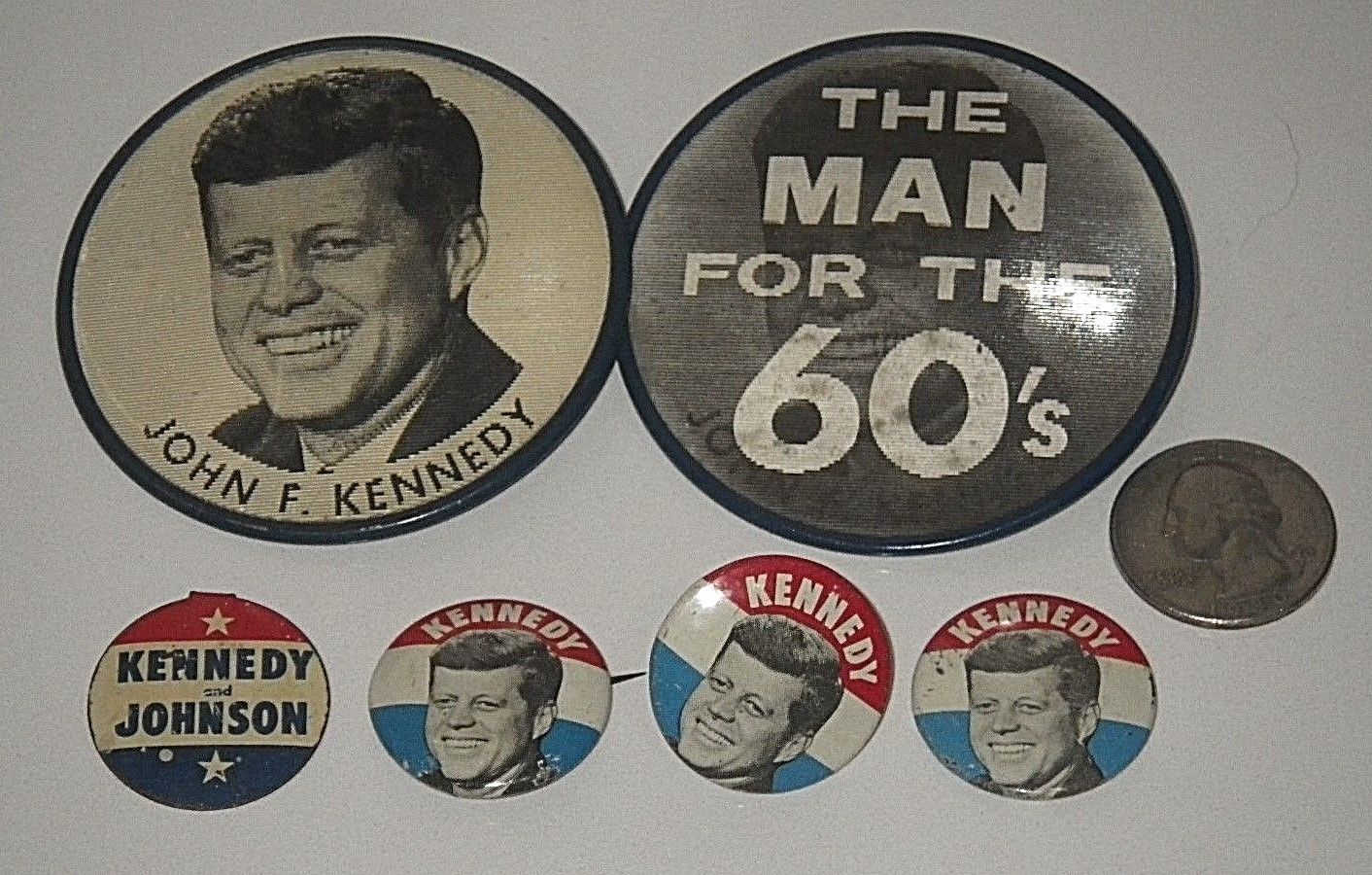 Title (ebay affiliate link): 6 Vintage Original KENNEDY Presidential Campaign Button Pins JFK 2 Flashers Lot