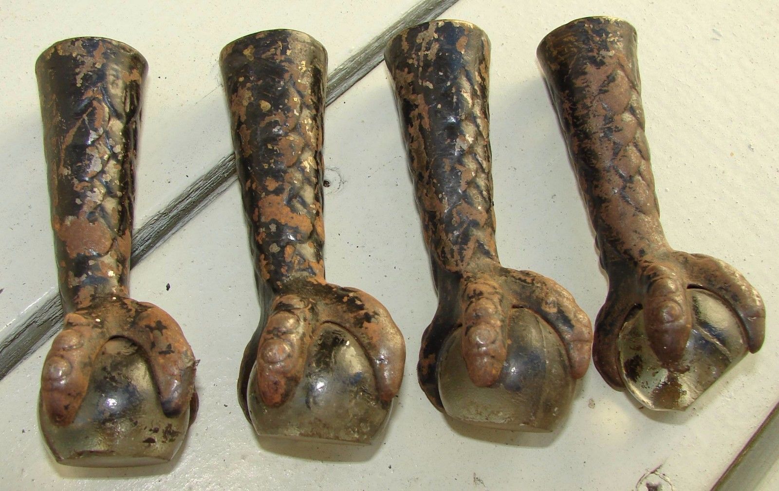 Title (ebay affiliate link): SET OF 4 ANTIQUE GLASS BALL & CAST IRON CLAW FURNITURE / PIANO STOOL FEET