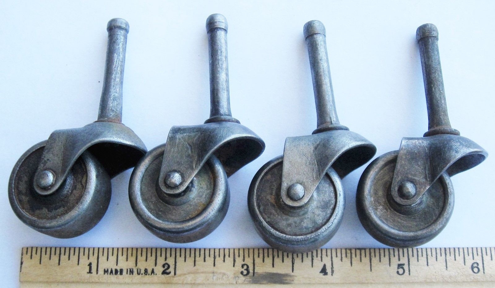 Title (ebay affiliate link): 4 Casters 1" Hooded Wheels Silver Color Metal Platform Stem Deco Industrial set