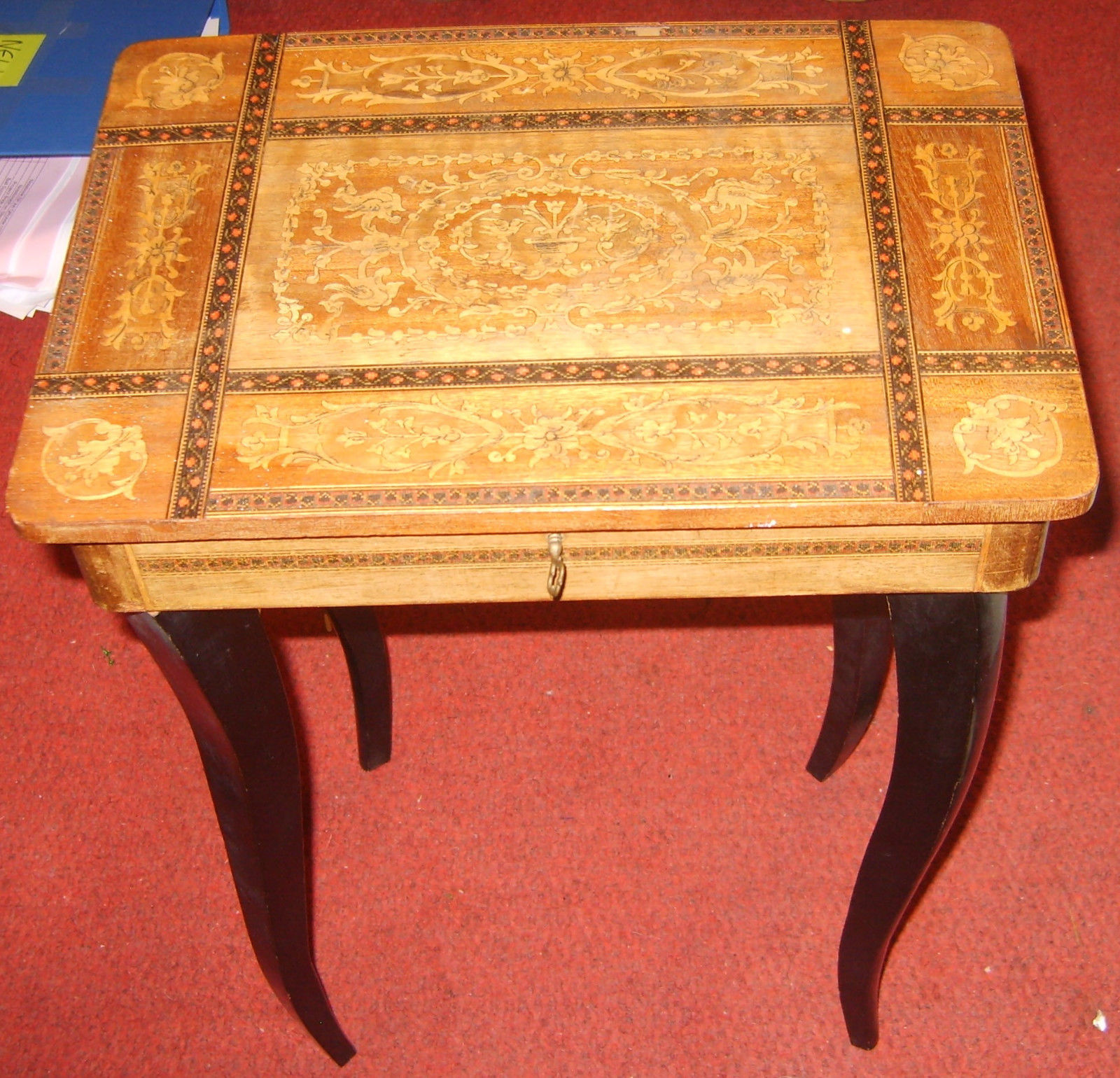 Italian sorrento ware inlaid marquetry musical sewing or storage table