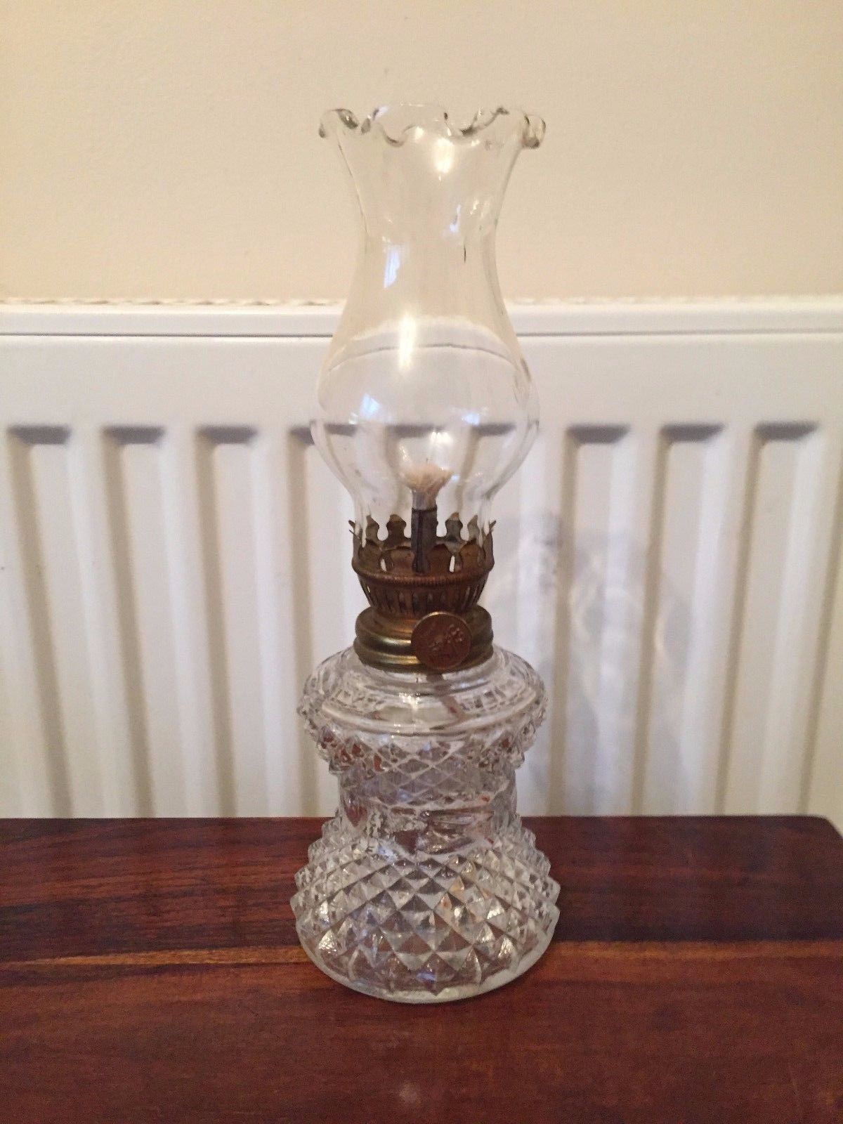 Title (ebay affiliate link): Small Vintage Glass oil lamp in working order excellent condition