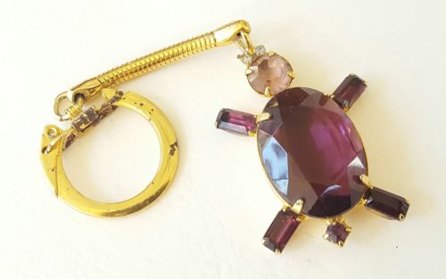 Title (ebay affiliate link): Vintage huge purple rhinestone turtle key chain jewelry gold tone