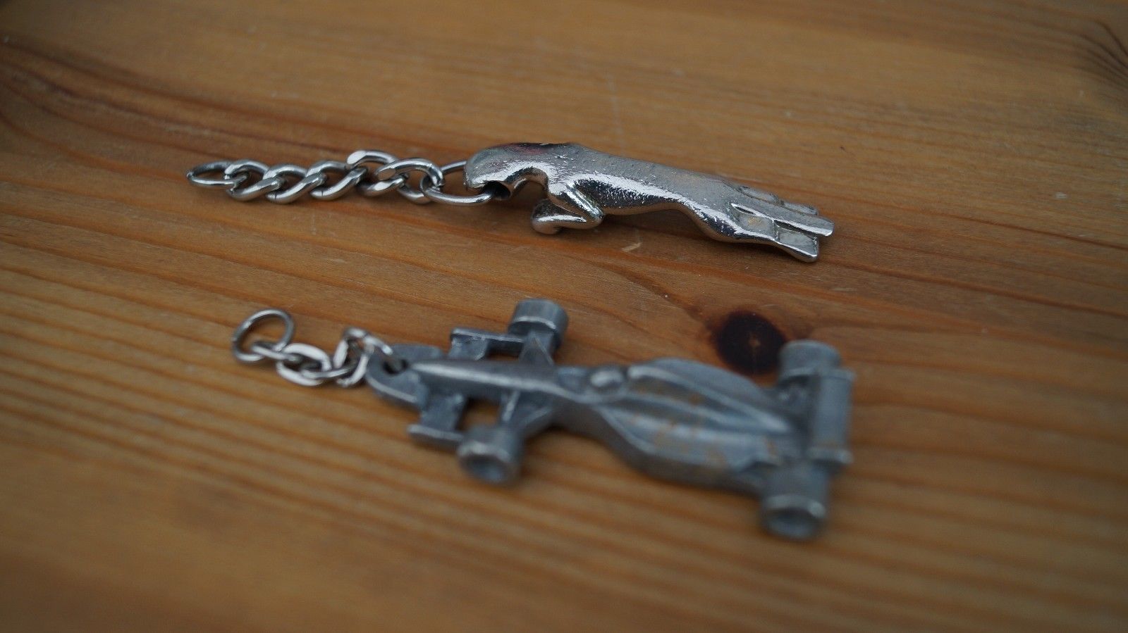Title (ebay affiliate link): Jaguar - Vintage Pewter Racing Car & Leaping Cat Key Chain Pendants
