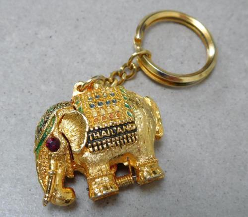 Title (ebay affiliate link): VINTAGE GOLD TONE ENAMEL & RHINESTONE THAI ELEPHANT KEYCHAIN LOCKET #416A
