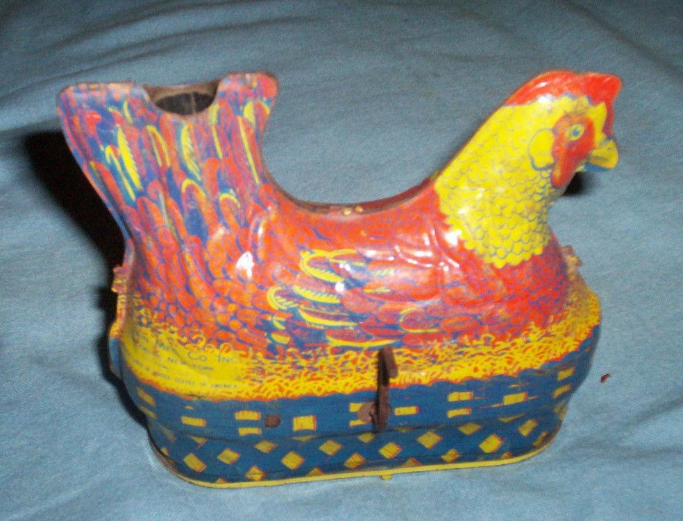 Title (ebay affiliate link): Vintage Baldwin Tin Toy Egg Laying Chicken/Hen Crank Clucking No Eggs