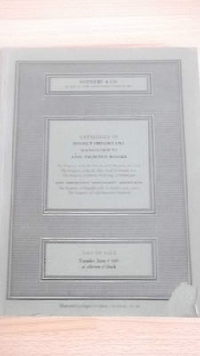 Title (ebay affiliate link): SOTHEBYS CATALOGUE OF HIGHLY IMPORTANT MANUSCRIPTS & PRINTED BOOKS. JUNE 6 1961