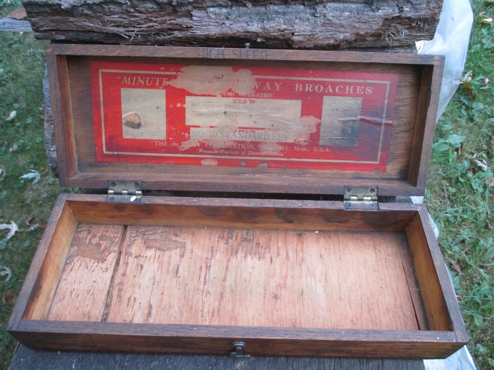 Title (ebay affiliate link): Old Oak Wooden Early jointed Box for Broach tools Cincinnati Advertising Box
