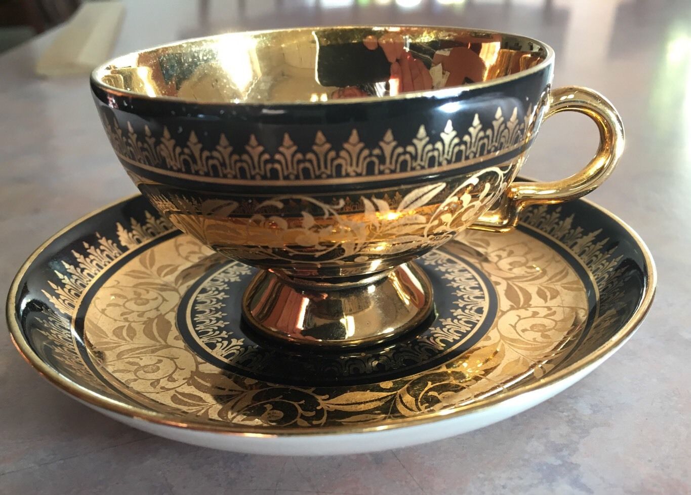 Title (ebay affiliate link): RW Rudolph Wachter Tea Cup Trio Gold Gilt black Bavaria 6771 gorgeous vintage pc