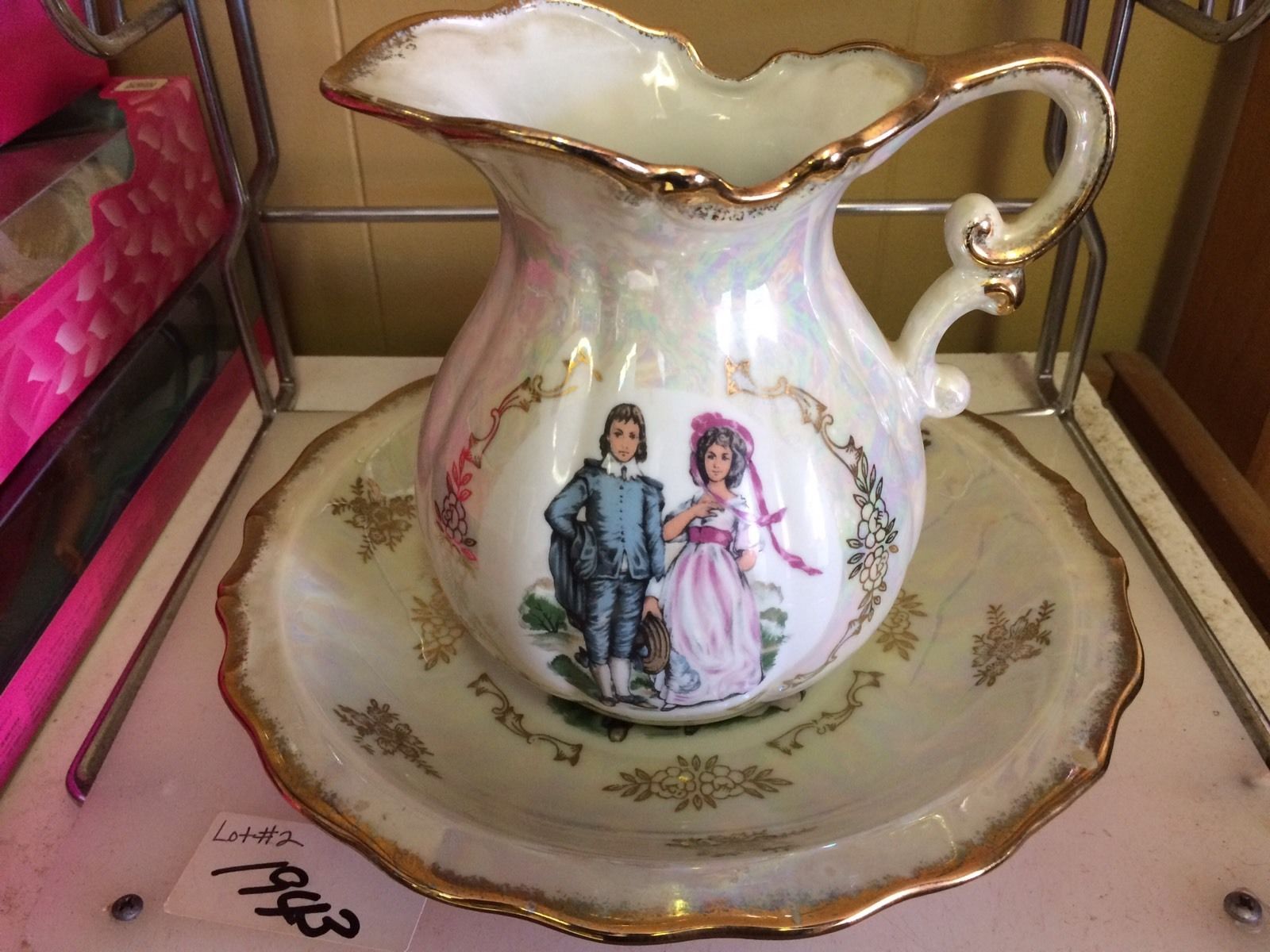Blue Boy And The Pink Lady Wash Bowl And Picture Set