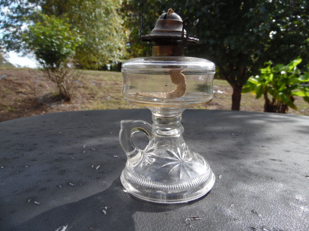 Nice Antique EAPG Finger Oil Lamp / 12 Point Stars On The Base
