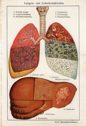 Title (ebay affiliate link): c1900 MEDICAL LUNGS AND LEAVES DISEASES Antique Lithograph Print Bilz