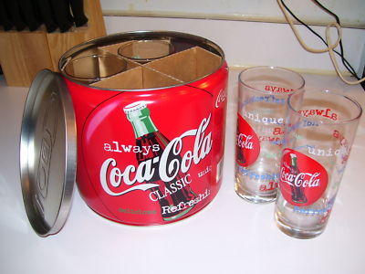 Title (ebay affiliate link): Coca-cola tin/bank with collector glasses