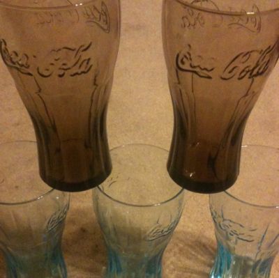 Title (ebay affiliate link): 2009 McDonalds Coca Cola Glass Brown Blue Coke Aqua
