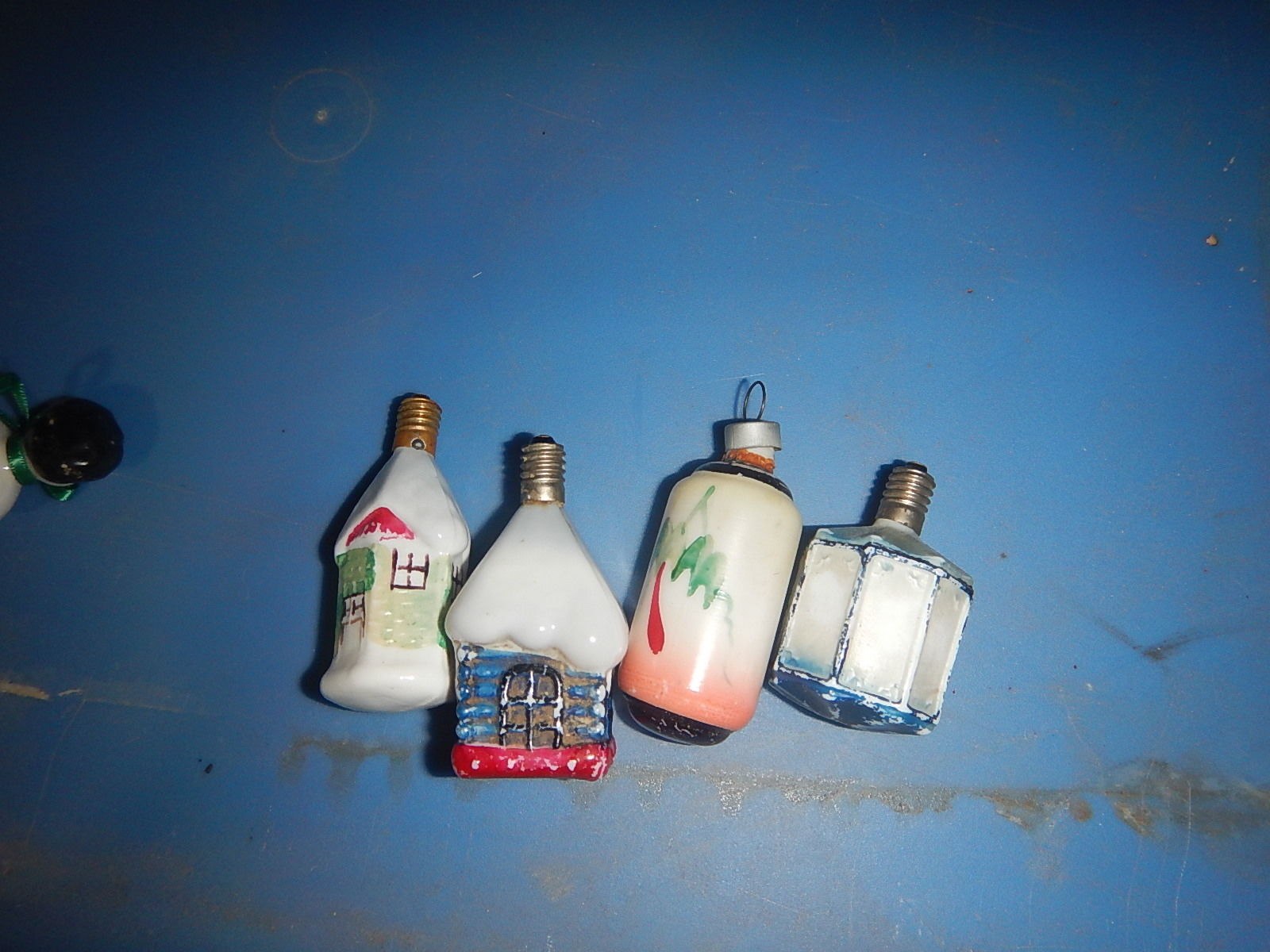 Old Vintage Milk Glass four Christmas tree bulbs lanterns