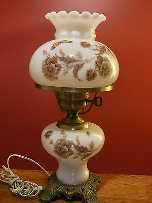 Vintage Floral Milk Glass Electric Hurricane Table Lamp 3-way Light GWTW