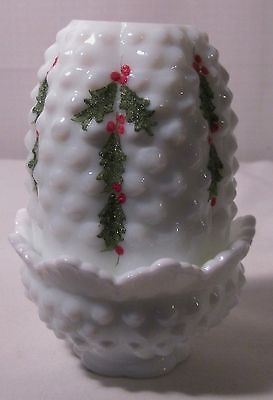 Vintage Hand Painted FENTON White Milk Glass Hobnail Fairy Light-CHRISTMAS-Jan C