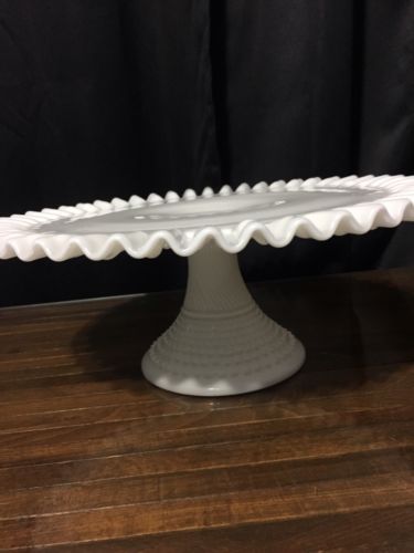 Title (ebay affiliate link): VINTAGE FENTON WHITE MILK GLASS HOBNAIL PEDESTAL CAKE STAND PLATE 13"