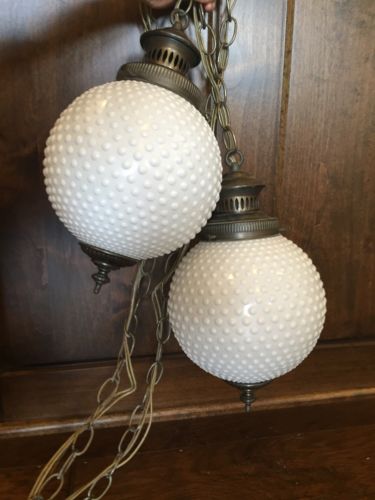 Title (ebay affiliate link): Vintage Milk Glass Hobnail Swag 2 Globe Pendant Light Estate Mid Century Retro