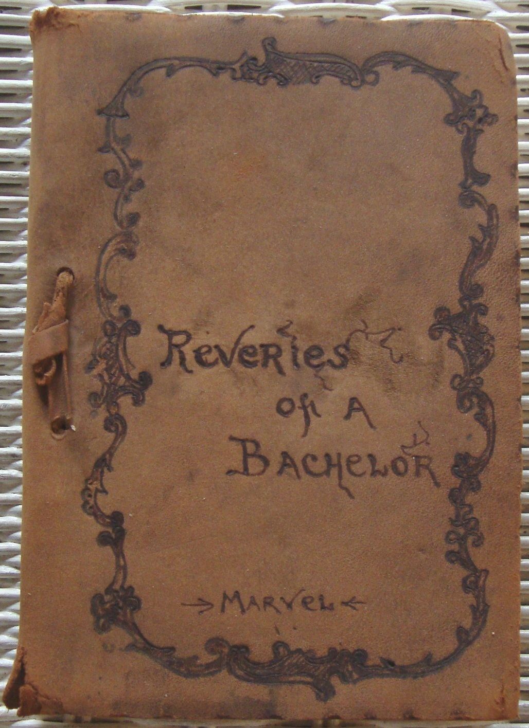 Title (ebay affiliate link): Old Suede Leather Bound Book Reveries Of A Bachelor By IK. Marvel