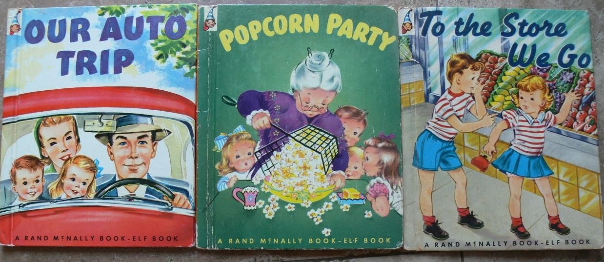 Title (ebay affiliate link): 3 Vintage Rand McNally Books ~ OUR AUTO TRIP, POPCORN PARTY, TO THE STORE WE GO