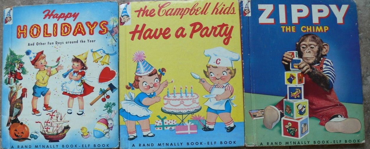 Title (ebay affiliate link): 3 Vintage Rand McNally Books ~ ZIPPY THE CHIMP, CAMPBELL KIDS HAVE A PARTY +