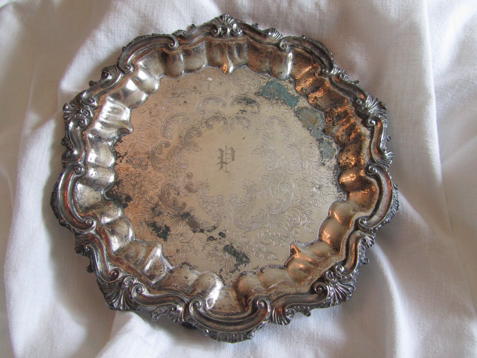 Title (ebay affiliate link): Vintage EGW&S EPNS Silver Plate Footed Scalloped Serving Tray Monogrammed "P"