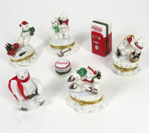Title (ebay affiliate link): SET OF 7 HAND PAINTED COCA COLA POLAR BEARS LIMITED EDITION TRINKET BOXES