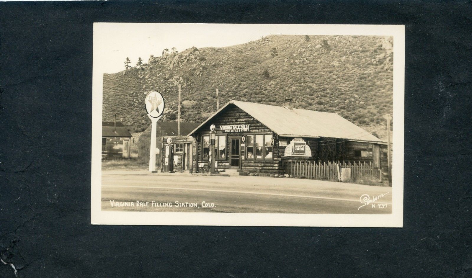 Virginia Dale CO, 40's real photo postcard, Store, Coke, Texaco Gas Station, PO
