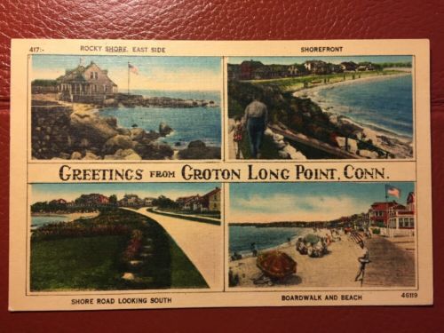 Title (ebay affiliate link): Vintage Linen Postcard Groton Long Point, Conn. - 4 images "Greetings"