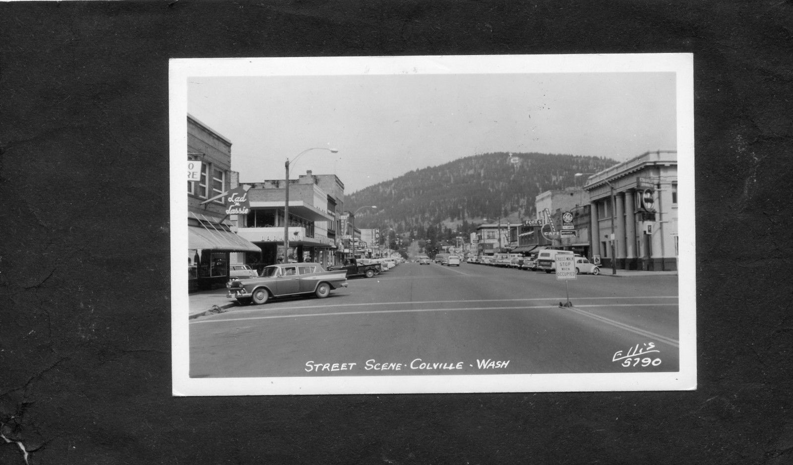 Title (ebay affiliate link): Colville Washington, real photo postcard, Downtown, Lad n Lassie, lots of cars