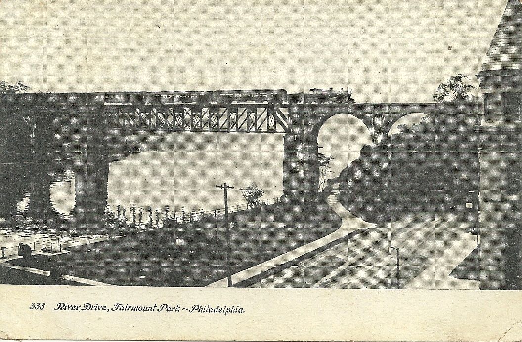 Title (ebay affiliate link): ANTIQUE 1901-1907 PC - TRAIN ON BRIDGE, RIVER DRIVE, FAIRMOUNT PARK, PHIL. PA