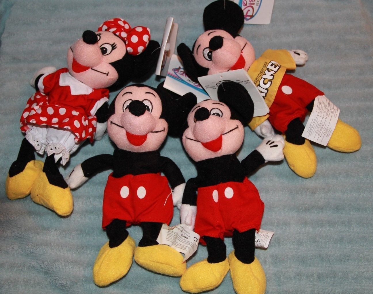 Title (ebay affiliate link): Disney Lot of 4 Disney Plush Bean Bags 3 Mickey Mouse & 1 Minnie Mouse