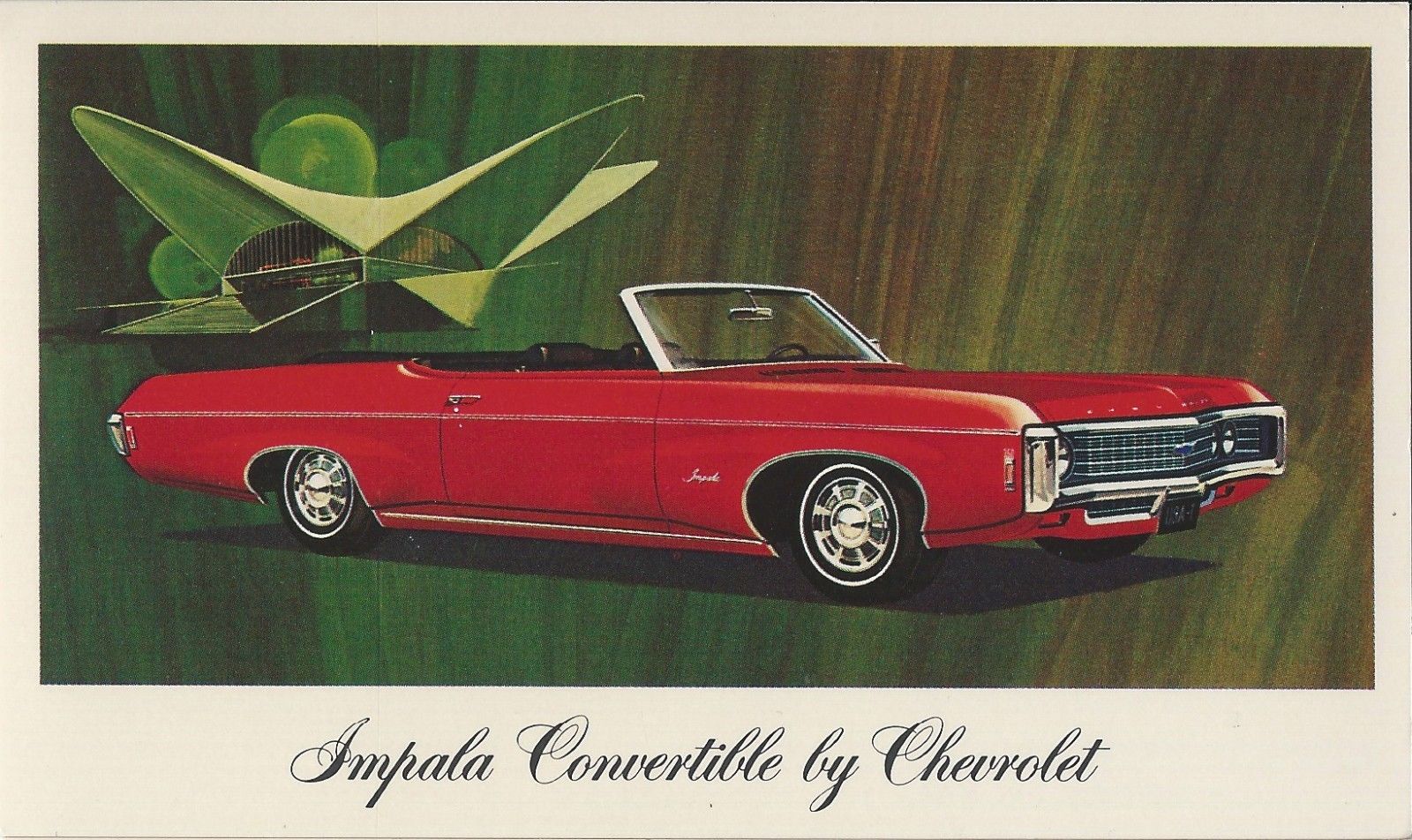 Title (ebay affiliate link): 1969 Chevrolet IMPALA CONVERTIBLE Red! Dealer Promotional Postcard UNUSED VG+/Ex