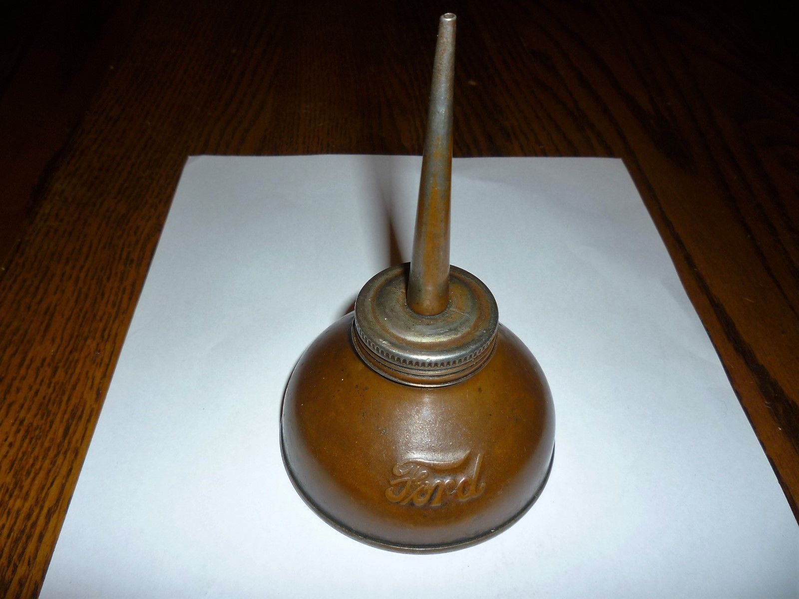 Title (ebay affiliate link): Vintage Ford Script Thumb Pump Copper & Tin Oil Can Truck Tractor Under Hood