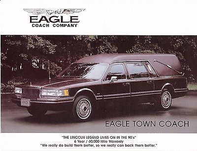Title (ebay affiliate link): 1993 1994 Ford Lincoln Town Car Hearse by Eagle Coach Co. Sales Brochure RARE.