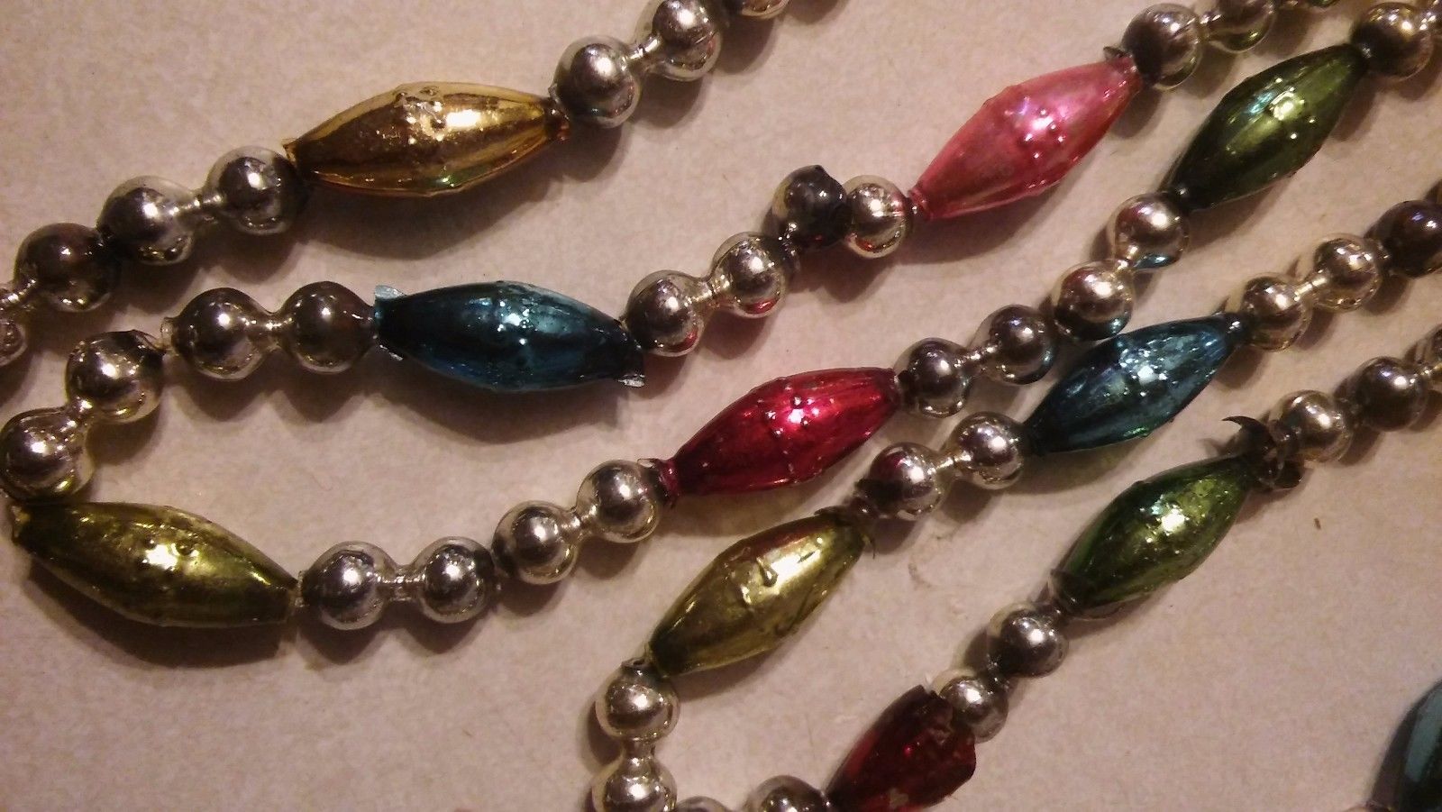 Title (ebay affiliate link): Vintage MultiColored Mercury Glass Bead Christmas Garland 8ft