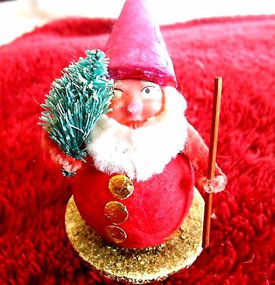 VINTAGE ROTUND MADE IN JAPAN SANTA CLAUS 3" TALL w TREE & WALKING STICK