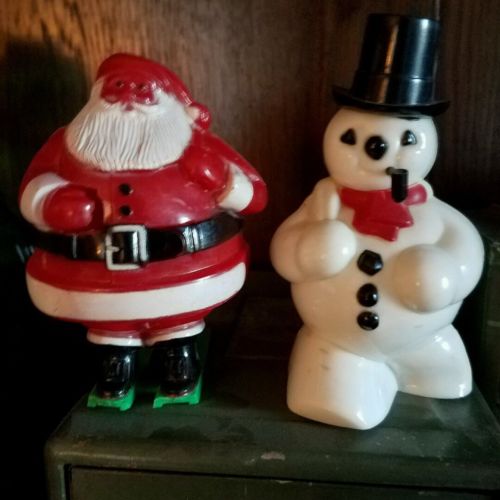Title (ebay affiliate link): Vintage 1950's Rosbro Rosen Plastic Candy Holders Snowman & Santa Misfits!
