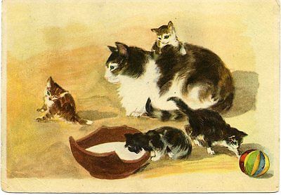 1946 Cat with Kittens by Plastov S Rare Russian postcard