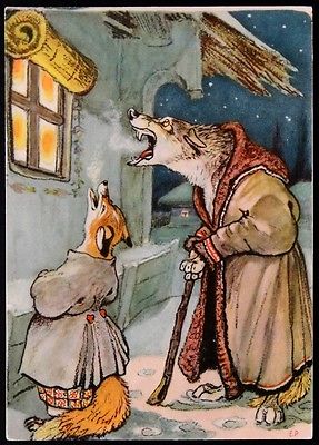Title (ebay affiliate link): 300144 WOLF 's SONG Rachev Fox Dressed Animals FAIRY TALE Russian postcard 1955