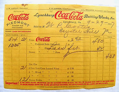Title (ebay affiliate link): RARE 1917 LYNCHBURG COCA-COLA BOTTLING WORKS, INC. LYNCHBURG VA. INVOICE