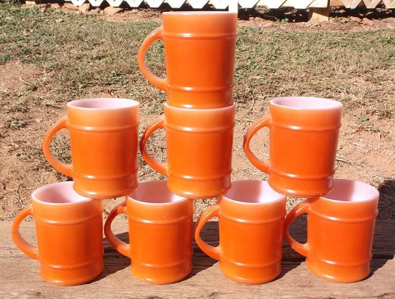 Title (ebay affiliate link): Vintage SET of 8 Anchor Hocking Fire King Orange Fired On Milk Glass Barrel MUGS