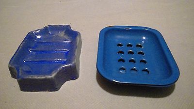 Antique Primitive Blue Soap Dishes Graniteware and Pottery