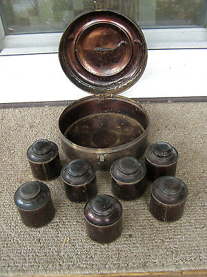 ANTIQUE 19th C. TIN SPICE CANISTER SET Victorian ROUND METAL BOX Complete