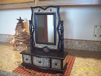 PRIMITIVE CRACKLE BLACK STAR WOOD VANITY WITH DRAWERS FARMHOUSE COUNTRY DECOR