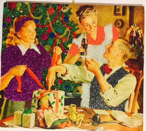 Title (ebay affiliate link): Family Tree Presents Coca Cola Ad Christmas VTG Glittered Ornament Book Image